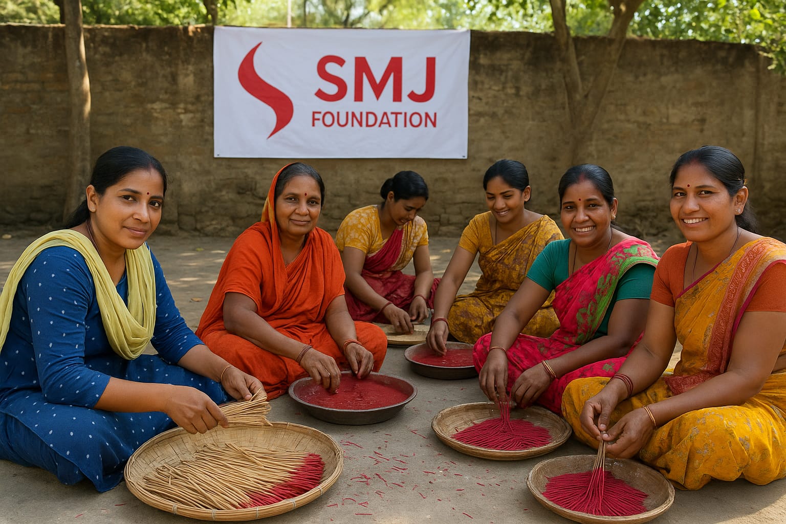 * महिलाओं और युवतियों के सशक्तिकरण के लिए SMJ Foundation उन्हें घर पर कुटीर उद्योग स्थापित करने हेतु प्रेरित करता है, ताकि वे घर बैठे पार्ट-टाइम कार्य करके अपनी आजीविका चला सकें और आर्थिक रूप से सशक्त बन सकें।